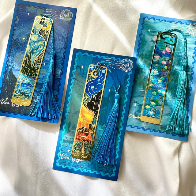 【大人のためのアート文具】ゴッホのしおり《星月夜》《夜のカフェテラス》モネのしおり《睡蓮》|ブックマーカー