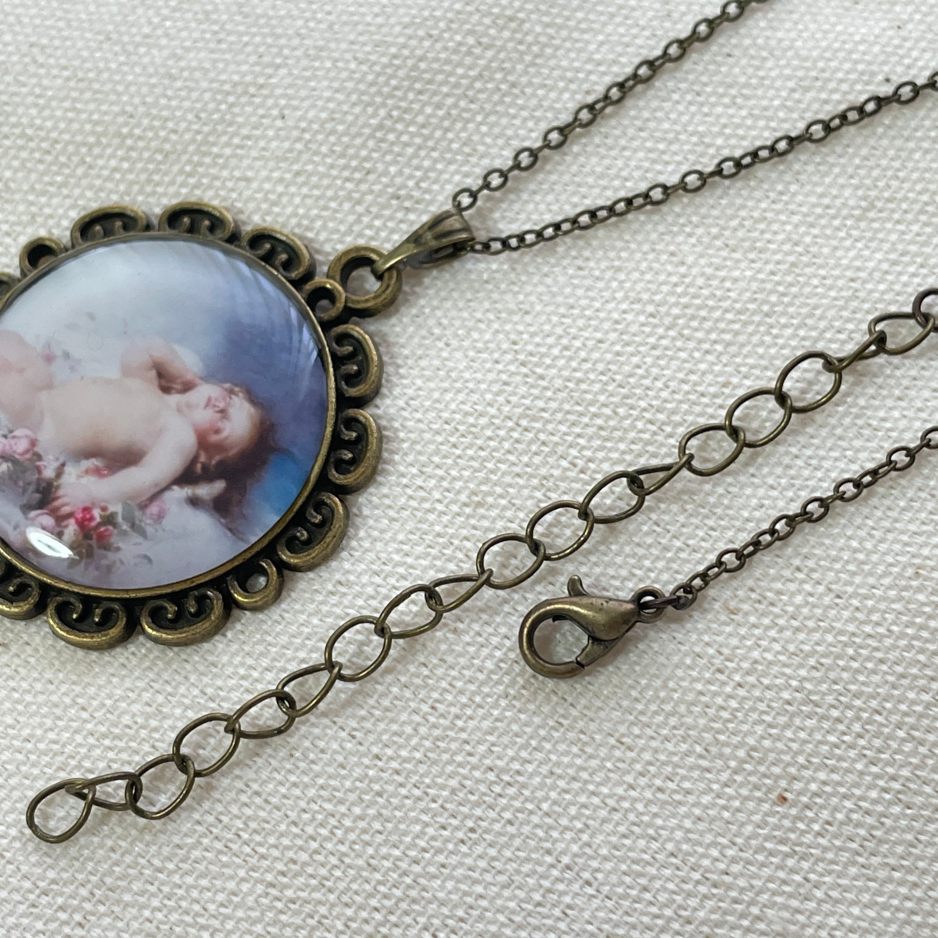可憐な天使や子どもたちの絵で知られる画家、レオン=バジール・ペローの作品をモチーフにしたネックレスです。