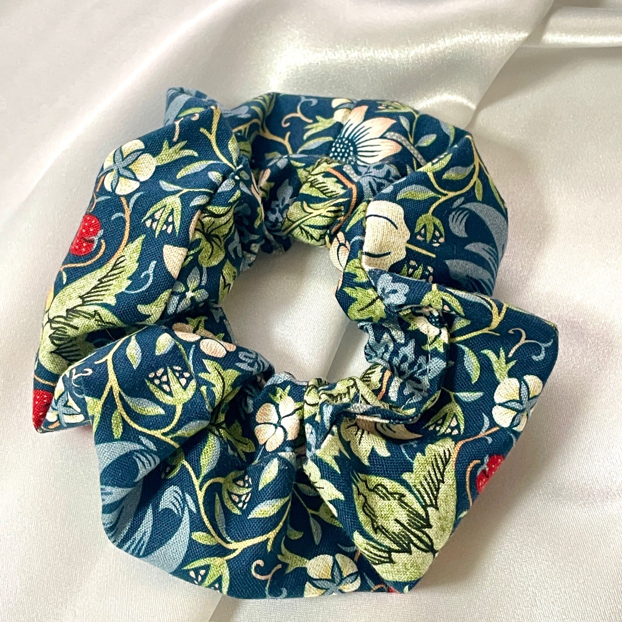 店主自らが生地選びからこだわり、ひとつひとつ丁寧に手仕事で仕立てた「アトリエ春日」オリジナルのハンドメイドシュシュです。