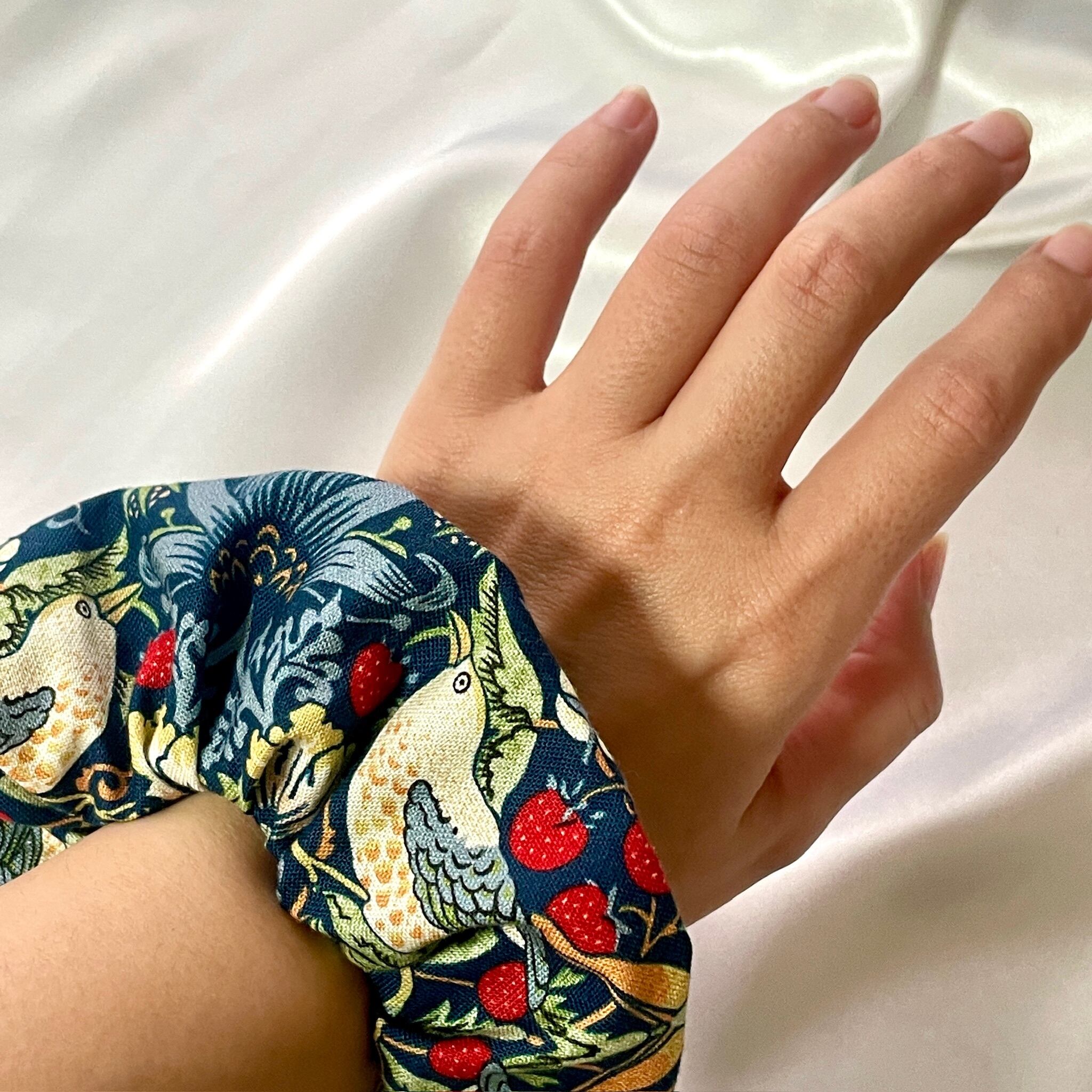 ・ 使い心地への配慮: 髪をまとめるのはもちろん、手首につけても窮屈にならないよう、内周のゴムの長さにもこだわっています。