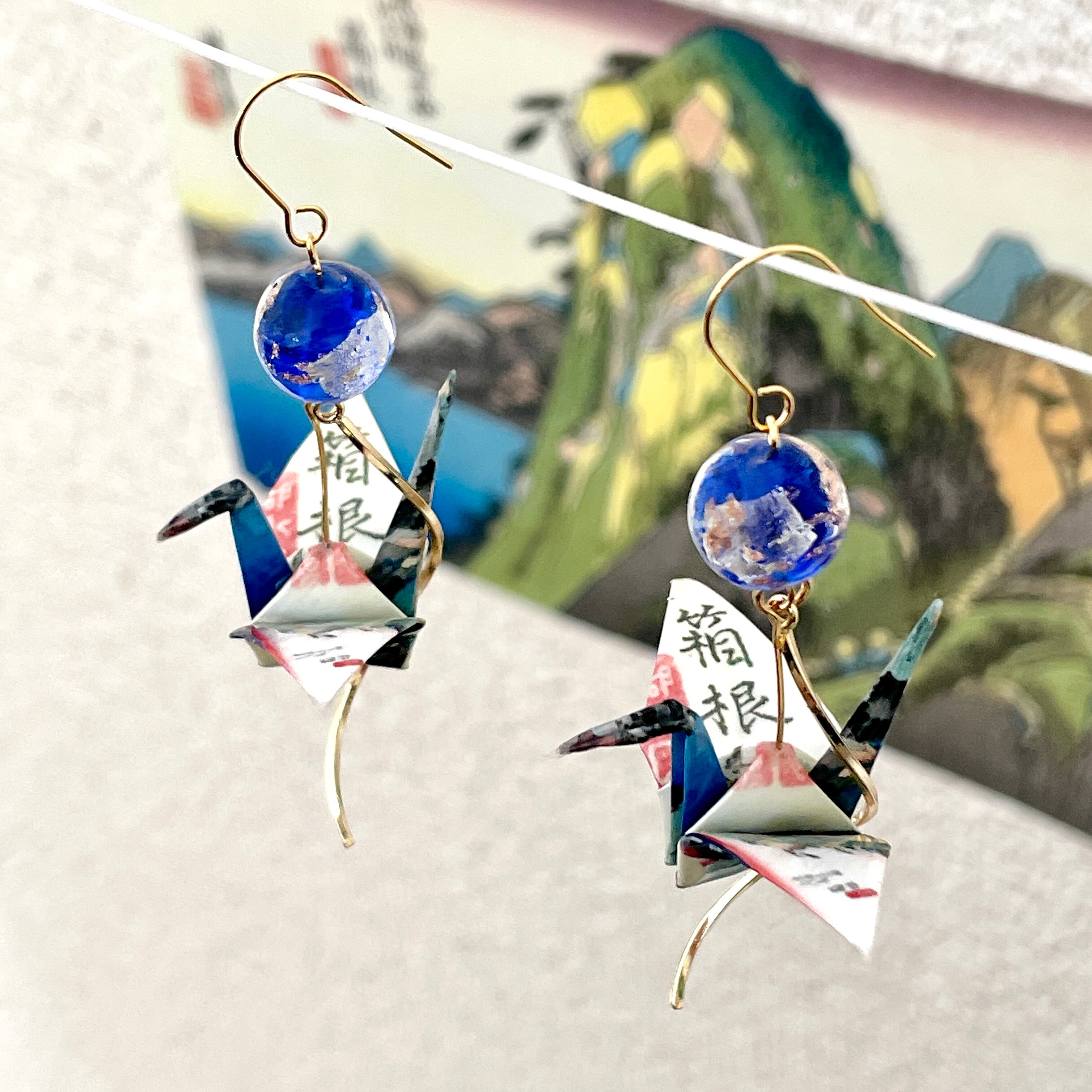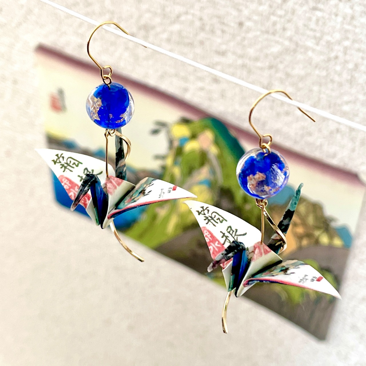 ピアス:サージカルステンレス(アレルギー対応) 、紙、レジン、とんぼ玉